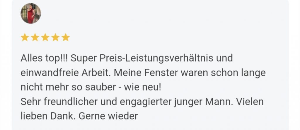 Reinigung von Fensterflächen, Fensterrahmen und Wintergärten